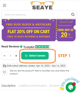 Step 1: Select the frame you want & Once you enter frame page. You will see “Select Lenses” button below. See picture below